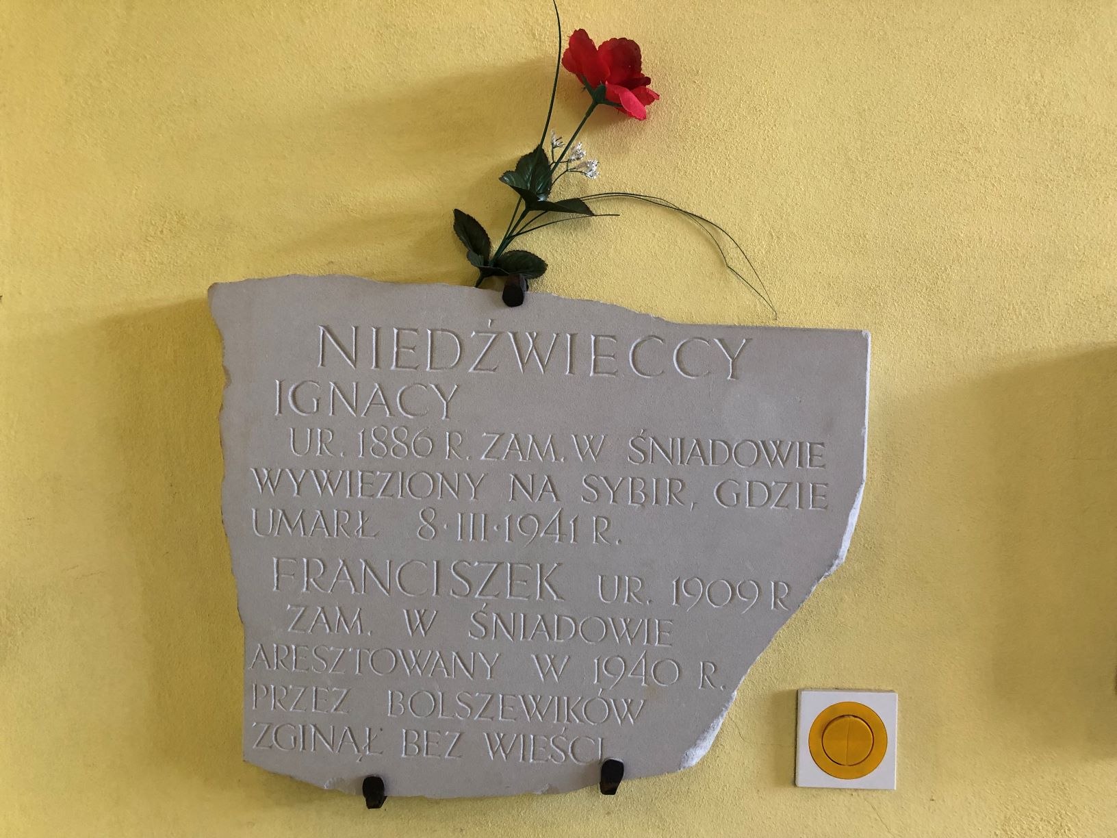 Kaplica Bohaterów 1920 r. powstała z inicjatywy proboszcza parafii Śniadowo ks. Zbigniewa Gołubowskiego. Kamień węgielny, sprowadzony z pola bitwy pod Ossowem w powiecie wołomińskim, położono 15 sierpnia 1990 r. przy udziale dziekana łomżyńskiego, ks. dr Henryka Gołaszewskiego. Prace budowlane kaplicy zakończone zostały w 1993 r., zaś wykończeniowe trzy lata później. Poświęcenia kaplicy i nadania jej wezwania Matki Bożej Królowej Męczenników dokonał biskup łomżyński Stanisław Stefanek dnia 21 czerwca 1998 r. Na ścianach kaplicy umieszczono trzynaście kamiennych tablic z inskrypcjami upamiętniającymi mieszkańców parafii, będących żołnierzami walczącymi w wojnie polsko-bolszewickiej, II wojnie światowej oraz żołnierzami Podziemia Niepodległościowego. Wśród nich znalazły się trzy nazwiska weteranów walk z 1920 r. : WACŁAW KALIŚCIAK / UR. 9. III. 1902 R. W ŚNIADOWIE / UCZESTNIK WOJNY W 1920 R. ŻOŁNIERZ A.K. / ODZNACZONY KRZYŻEM POWSTANIA WARSZAWSKIEGO / WIĘZIEŃ OBOZU KONCENTRACYJNEGO / W SACHSENHAUSEN-ORANIENBURG / ZM. 8.X.1981 R. W U.S.A. POCHOWANY / W CZĘSTOCHOWIE AMERYKAŃSKIEJ ŻEBROWSKI KAZIMIERZ / ZAM. ŻEBRY, SIERŻ-LEGIONISTA, LAT 49 / D-CA N.Z.W. PS. „BĄK” / SYN JEGO JERZY LAT 19 PS. „KONAR” / ZGINĘLI 3.XII.1949 R. / W MĘŻENINIE K. ŚNIADOWO / W WALCE Z U.B. BAGNOWSKI / PAWEŁ / ZAM. W ŚNIADOWIE / ŻOŁNIERZ 1920 R. / WYWIEZIONY NA SYBERIĘ / W 1941 GDZIE ZMARŁ / W 1944 R. Źródło: Małgorzata Karczewska, Maciej Karczewski, Miejsca pamięci czynu niepodległościowego na północno-wschodnim Mazowszu, Białystok 2019, tam wcześniejsza literatura. Fot. © Małgorzata Karczewska