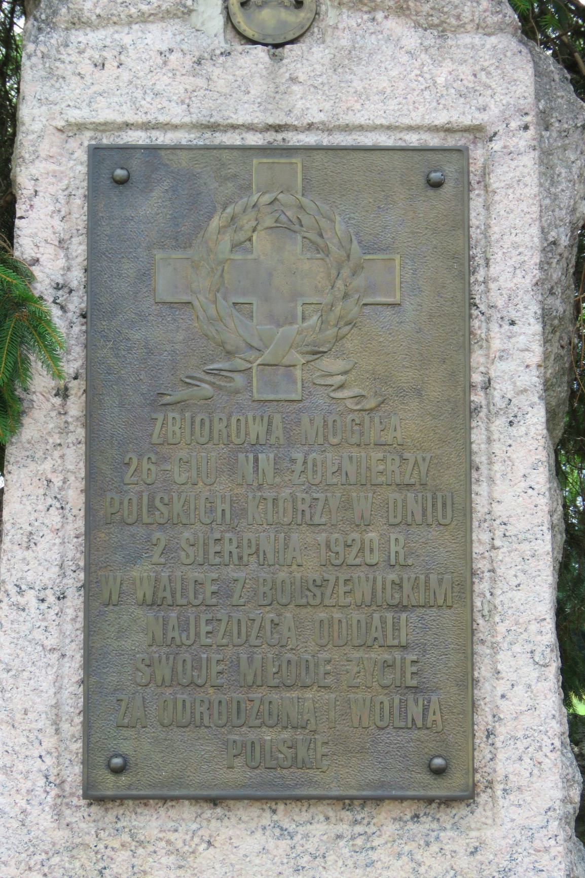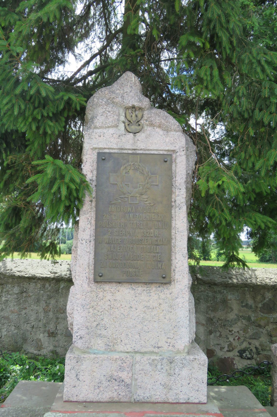 W południowej części nekropolii, przy murze cmentarnym pochowani zostali żołnierze polscy polegli podczas wojny polsko-bolszewickiej. W dokumentach parafialnych zachowały się informacje o pogrzebie nieznanej liczby niezidentyfikowanych żołnierzy zabitych przez Kozaków 2 sierpnia 1920 r. W pochówku miał pomagać kościelny i zarazem grabarz Antoni Gwara . Grób został wówczas otoczony kamiennym obramowaniem. Miejsce wybrano nieprzypadkowo, gdyż obok znajdowała się już mogiła powstańców 1863 r. W późniejszym okresie pochowano tutaj również żołnierzy 3. Pułku Strzelców Konnych poległych 9 września 1939 r. pod wsią Truszki. W 1990 r. mogile żołnierzy z wojny polsko-bolszewickiej nadano nowy wystrój. Autorem projektu przebudowy był Jan Moczydłowski, zaś wykonawcą tablicy pamiątkowej rzeźbiarz Wojciech Jarocki z Łap. Głównym elementem jest smukły, granitowy obelisk na którego froncie umieszczono mosiężną tablicę z inskrypcją: ZBIOROWA MOGIŁA / 26-CIU NN ŻOŁNIERZY / POLSKICH, KTÓRZY W DNIU / 2 SIERPNIA 1920 R. / W WALCE Z BOLSZEWICKIM / NAJEŹDŹCĄ ODDALI / SWOJE MŁODE ŻYCIE / ZA ODRODZONĄ I WOLNĄ / POLSKĘ Lista strat Wojska Polskiego z lat 1918-1920 wymienia pięciu żołnierzy poległych w Śniadowie: Franciszek Bronowski, szeregowy 33. Pułku Piechoty, poległ 3 VIII 1920 r. Jan Kornecki, szeregowy 61. Pułku Piechoty, poległ 22 VIII 1920 r. Feliks Kuśmirek, starszy szeregowy 101. Pułku Piechoty, poległ 2 VIII 1920 r. Jan Nanartowicz, strzelec Lidzkiego Pułku Strzelców, poległ 1 VIII 1920 r. […] Żewiecki, szeregowy 64. Pułku Piechoty, poległ 2 VIII 1920 r. Nie wiadomo, czy spoczywają oni w mogile zbiorowej jako niezidentyfikowani polegli, czy też zostali pochowani w innym miejscu. Źródło: Małgorzata Karczewska, Maciej Karczewski, Miejsca pamięci czynu niepodległościowego na północno-wschodnim Mazowszu, Białystok 2019, tam wcześniejsza literatura. Fot. © Małgorzata Karczewska