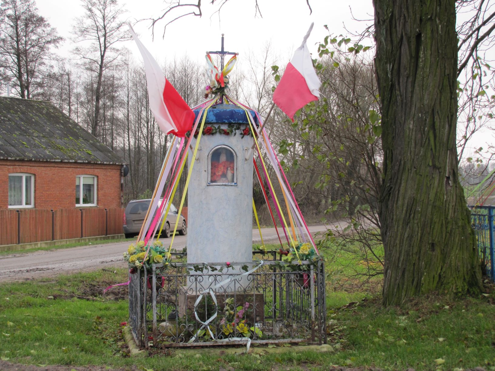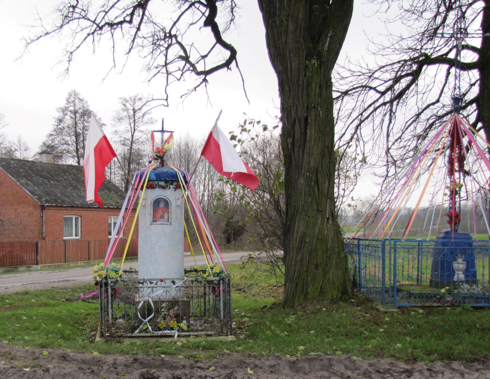 Na południowym skraju wsi, przy krzyżu przydrożnym z końca XIX wieku, w 1928 r. wzniesiono kapliczkę słupową. Ustawiona na betonowym, czworobocznym postumencie, murowana z cegły, przykryta lekko wypukłym daszkiem. Od frontu, w górnej części słupa znajduje się przeszklona wnęka z figurką Matki Boskiej. Na betonowej podmurówce data „1928”. Mieszkańcy Boguszyc nie pamiętają już intencji wystawienia kapliczki, jednak do dzisiaj żywy jest we wsi zwyczaj ozdabiania jej flagami państwowymi na 11 listopada. Fakt ten oraz data budowy przypadająca na dziesiątą rocznicę odzyskania niepodległości wskazują, że wzniesienie kapliczki można wiązać z uczczeniem odzyskania niepodległości. Źródło: Małgorzata Karczewska, Maciej Karczewski, Miejsca pamięci czynu niepodległościowego na północno-wschodnim Mazowszu, Białystok 2019. Fot. © Marlena Brzozowska