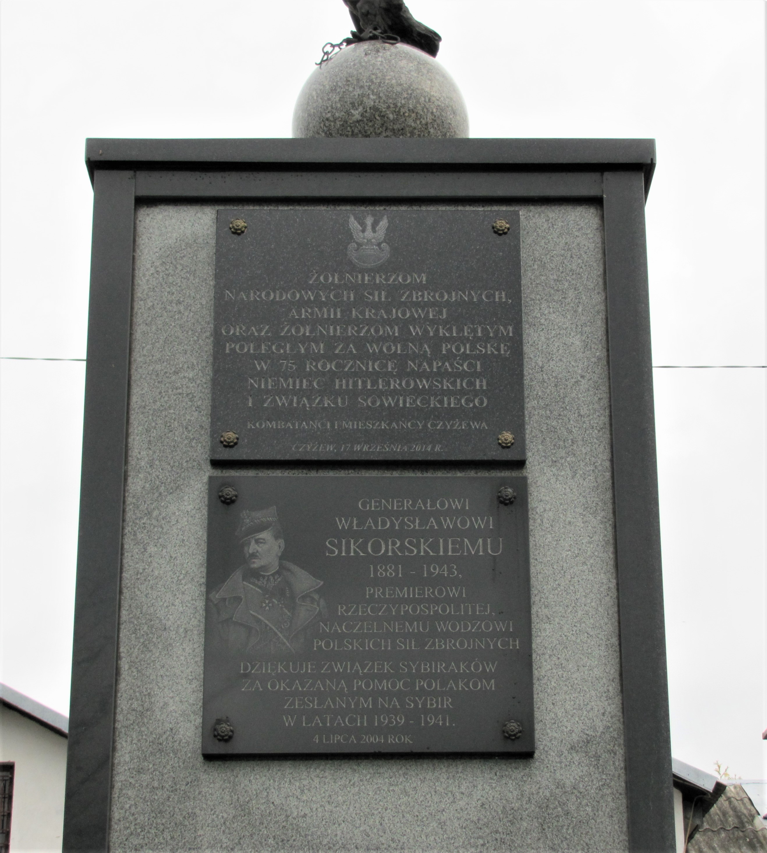 W 1928 r. w centrum miasta wzniesiony został pomnik ku czci marszałka Józefa Piłsudskiego oraz żołnierzy polskich poległych w walkach o odzyskanie niepodległości. Nadano mu wyrazistą i prostą formę trzymetrowej wysokości kamiennego obelisku zwieńczonego kamienną kulą. Na froncie umieszczono pamiątkową tablicę z inskrypcją: Cześć bohaterom poległym za niepodległą ojczyznę. Na początku II wojny światowej, po wkroczeniu Armii Czerwonej, pomnik został przewrócony i zakopany. Przez ponad cztery dekady realia polityczne nie sprzyjały upamiętnianiu czynu niepodległościowego i przywróceniu pamięci o żołnierzach biorących udział w wojnie polsko-bolszewickiej. Pomnik wydobyto i ustawiono na dawnym miejscu dopiero w 1981 r. Po kolejnych 21 latach, w 2003 r. został odrestaurowany. W zwieńczeniu kuli umieszczono figurę orła w koronie, z łapami spętanymi łańcuchem i rozpostartymi skrzydłami. Na froncie monumentu umieszczono godło państwowe i pamiątkową tablicę: POLAKOM / POLEGŁYM W WALKACH / O ODZYSKANIE NIEPODLEGŁOŚCI / NASZEJ OJCZYZNY / POMNIK WZNIESIONY W ROKU 1928 / ZNISZCZONY I ZAKOPANY W 1940 / ODKOPANY I ODBUDOWANY W 1981-83 / RODACY W kolejnych latach rozszerzono przekaz symboliczny pomnika. Z inicjatywy Koła Sybiraków w Czyżewie, w rocznicę śmierci generała Władysława Sikorskiego 4 lipca 2004 r. na bocznej powierzchni monumentu odsłonięto tablicę poświęconą jego pamięci: GENERAŁOWI / WŁADYSŁAWOWI / SIKORSKIEMU / 1881 – 1943, / PREMIEROWI / RZECZYPOSPOLITEJ, / NACZELNEMU WODZOWI / POLSKICH SIŁ ZBROJNYCH / DZIĘKUJE ZWIĄZEK SYBIRAKÓW / ZA OKAZANĄ POMOC POLAKOM / ZESŁANYM NA SYBIR / W LATACH 1939 – 1941. / 4 LIPCA 2004 ROK Trzy lata później, 11 listopada 2007 r. w ten sam sposób upamiętniony został generał Władysław Anders. Na drugiej z bocznych powierzchni odsłonięto wówczas tablicę poświęconą jego pamięci: GENERAŁOWI / WŁADYSŁAWOWI / ANDERSOWI / 1892 – 1970, / DOWÓDCY II KORPUSU / ARMII POLSKIEJ / W PODZIĘCE ZA URATOWANIE NAS / Z ‘NIELUDZKIEJ ZIEMI’ / SYBIRACY / CZYŻEW, 11 LISTOPADA 2007 ROK W dniu 21 września 2014 r. w Czyżewie miały miejsce uroczystości związane z rocznicą wybuchu II wojny światowej. Elementami obchodów było otwarcie Muzeum Ziemi Czyżewskiej, odsłonięcie nowego pomnika Zesłańców Sybiru oraz nowej tablicy pamiątkowej umieszczonej na Pomniku Niepodległości. Poświęcono ją pamięci żołnierzy Narodowych Sił Zbrojnych, Armii Krajowej oraz żołnierzom wyklętym: ŻOŁNIERZOM / NARODOWYCH SIŁ ZBROJNYCH, / ARMII KRAJOWEJ / ORAZ ŻOŁNIERZOM WYKLĘTYM / POLEGŁYM ZA WOLNĄ POLSKĘ / W 75 ROCZNICĘ NAPAŚCI / NIEMIEC HITLEROWSKICH / I ZWIĄZKU SOWIECKIEGO / KOMBATANCI I MIESZKAŃCY CZYŻEWA / CZYŻEW, 17 WRZEŚNIA 2014 R. Źródło: Małgorzata Karczewska, Maciej Karczewski, Miejsca pamięci czynu niepodległościowego na północno-wschodnim Mazowszu, Białystok 2019. Fot. © Marlena Brzozowska