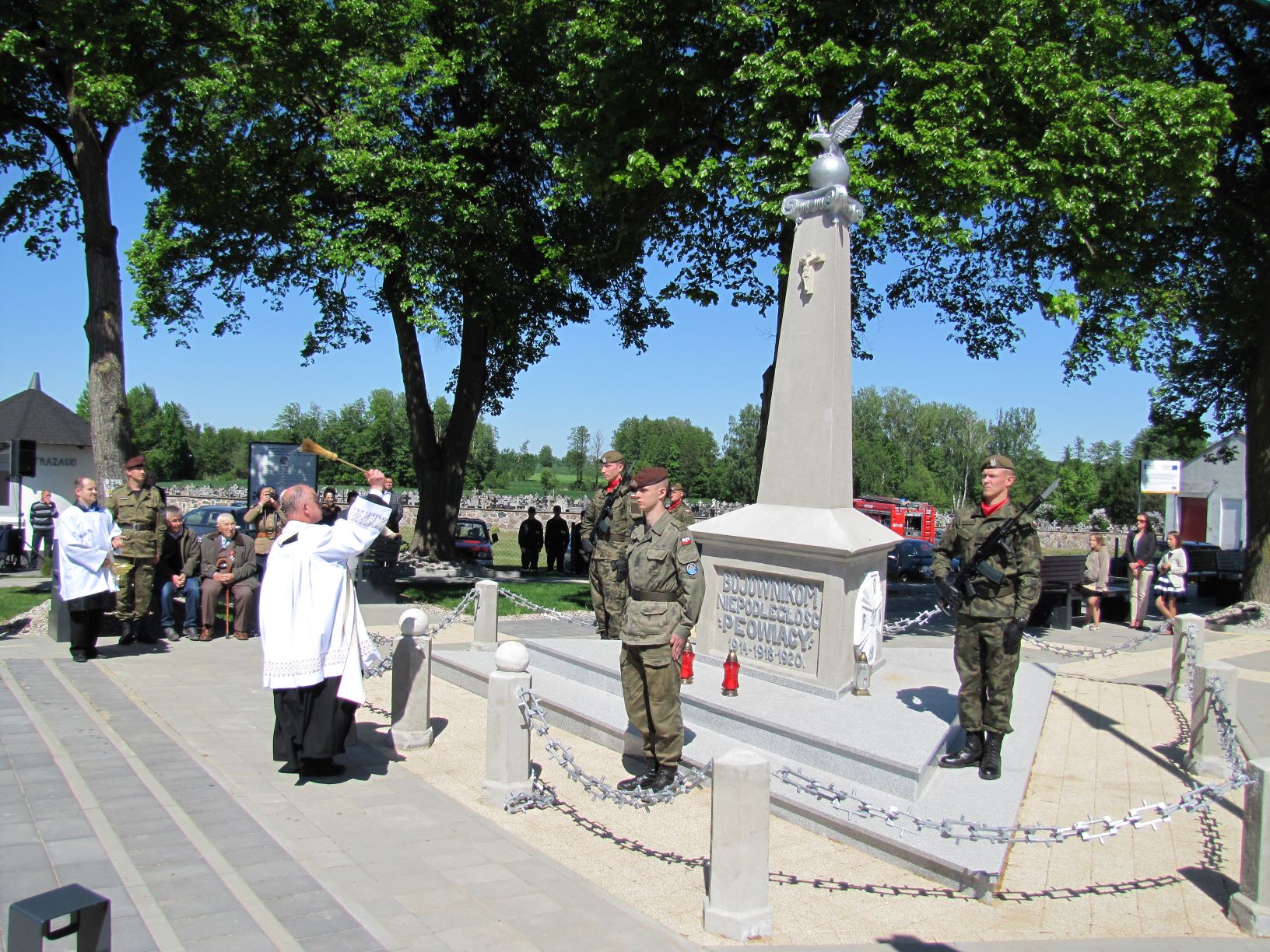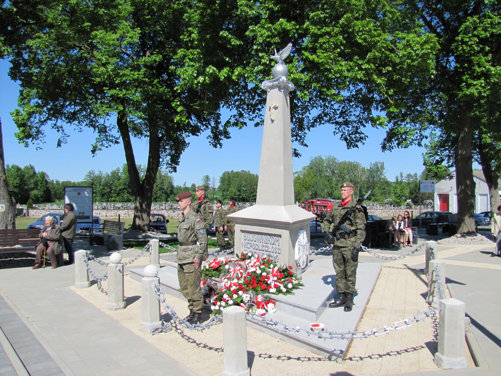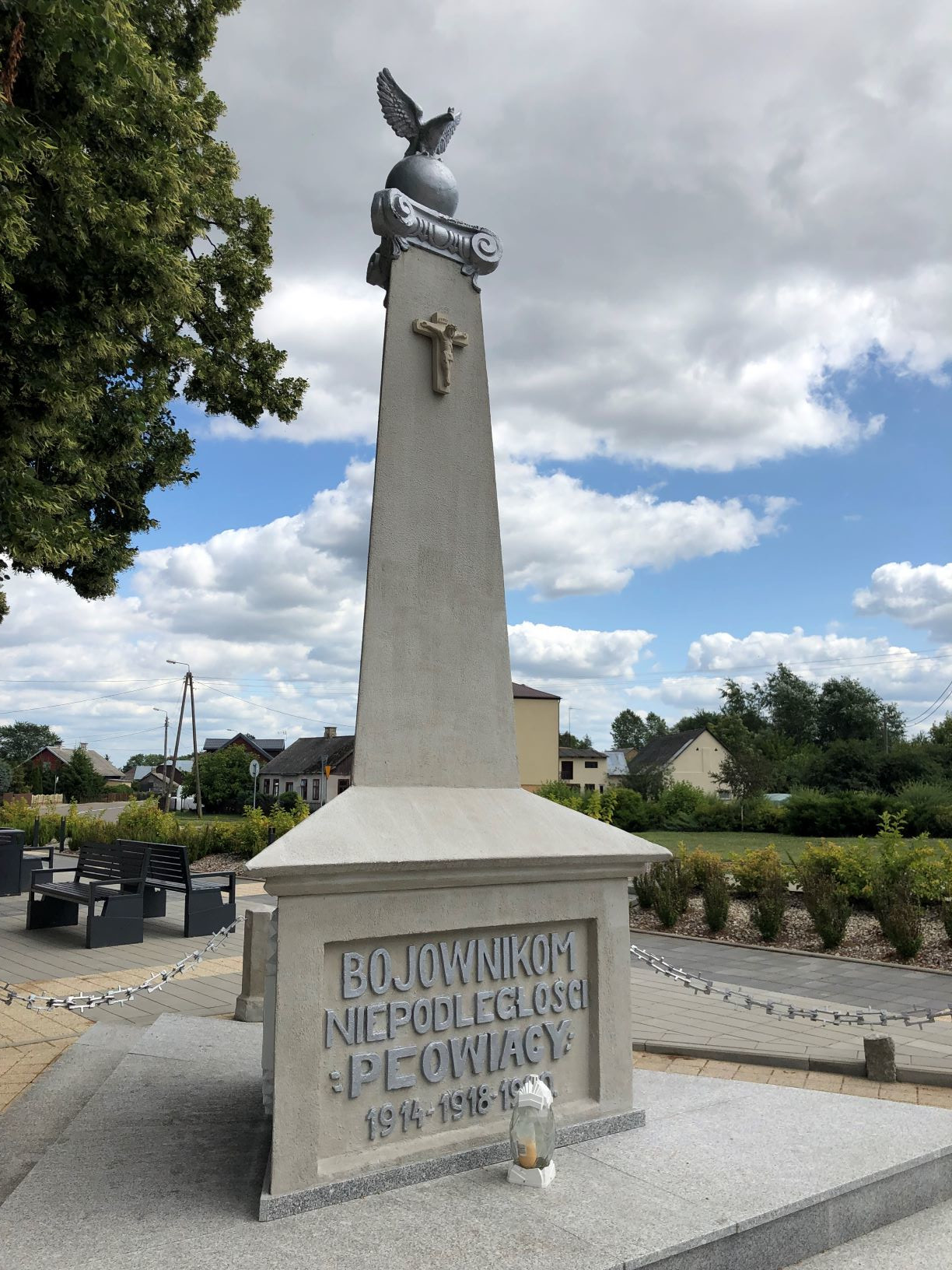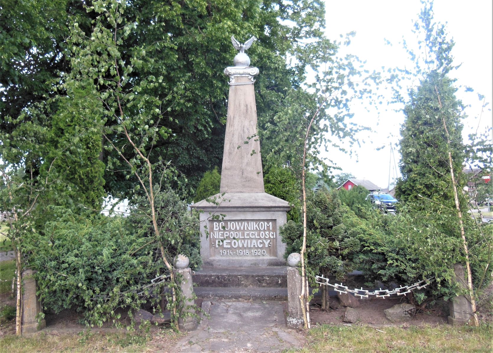 Pomnik ku czci bojowników o niepodległość, poległych w latach 1914-1920, zwany pomnikiem Orła Białego, został wzniesiony w 1936 r. Inicjatorem budowy byli trzej weterani: Bolesław Sztyler, zastępca komendanta POW w Wysokiem Mazowieckiem, Stanisław Mystkowski, żołnierz POW i ochotnik w wojnie polsko-bolszewickiej oraz Mieczysław Biały, również peowiak, podczas wojny polsko-bolszewickiej żołnierz 33. Pułku Piechoty. Uroczystość odsłonięcia i poświęcenia pomnika miała miejsce 30 sierpnia 1936 r. Uczestniczył w niej starosta wysokomazowiecki dr Józef Świątkiewicz, a oprawę religijną zapewnił ksiądz proboszcz Konstanty Ostrowski. Pomnikowi nadano prostą lecz wyrazistą formę. Na szerokim cokole o trójkątnym obrysie, poprzedzonym dwoma schodkami, wniesiono wysoki obelisk zwieńczony kulą i postacią orła wzbijającego się do lotu. Na froncie cokołu widnieje napis: BOJOWNIKOM / NIEPODLEGŁOŚCI / PEOWIACY / 1914 – 1918 - 1920 W 1939 r. pomnik w Dąbrówce Kościelnej został opisany w następujący sposób: Pomnik POW – słup cementowy, trójkątny, z kulą i orłem na wierzchu, od frontu; z boku jest mały krzyżyk, u dołu są napisy i odznaki strzeleckie… . Czasy drugiej wojny światowej i PRL-u monument przetrwał w dobrym stanie. Nie był co prawda otoczony urzędową opieką, ale też nie uległ zniszczeniu. Do 2017 r. trwał nieco zapomniany, w pogarszającym się stanie wywołanym upływającym czasem. W latach 2017-2018 pomnik oraz teren skweru na którym się znajduje został odnowiony i urządzony staraniem władz gminy. Ponownego uroczystego odsłonięcia dokonano 6 maja 2018 r. przy udziale mieszkańców wsi, oddziałów reaktywowanej POW i zaproszonych gości.