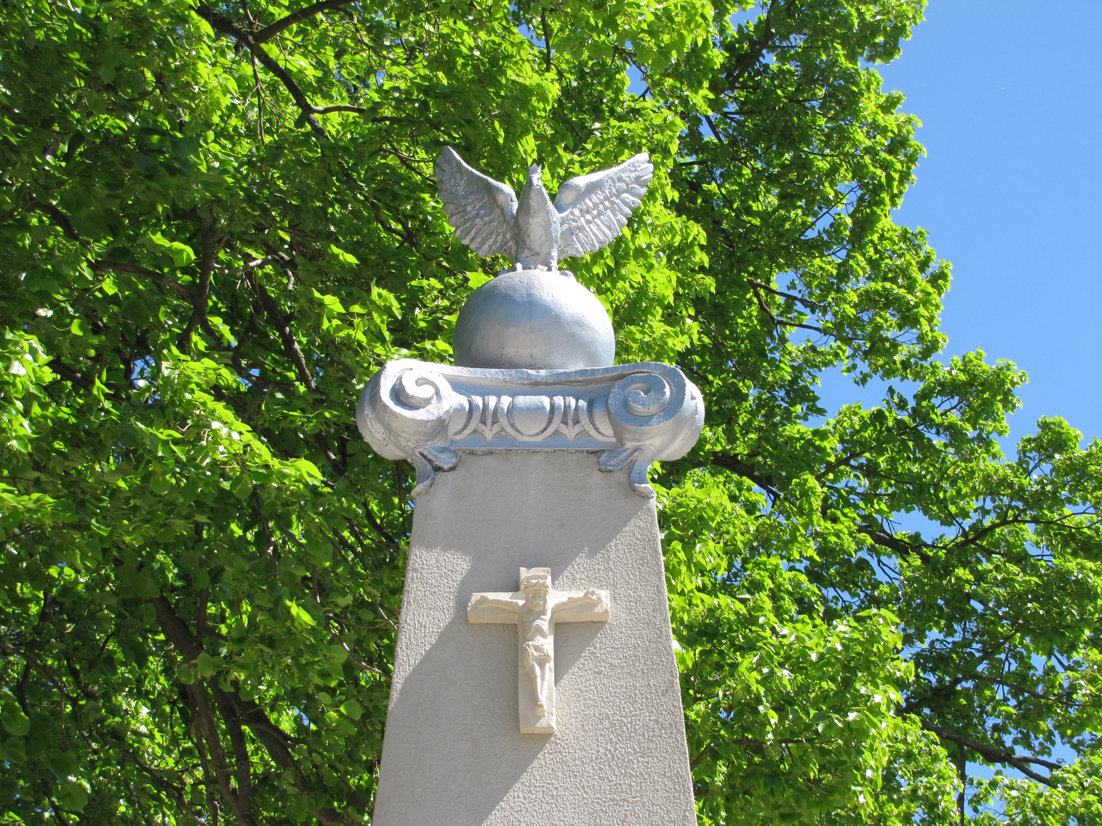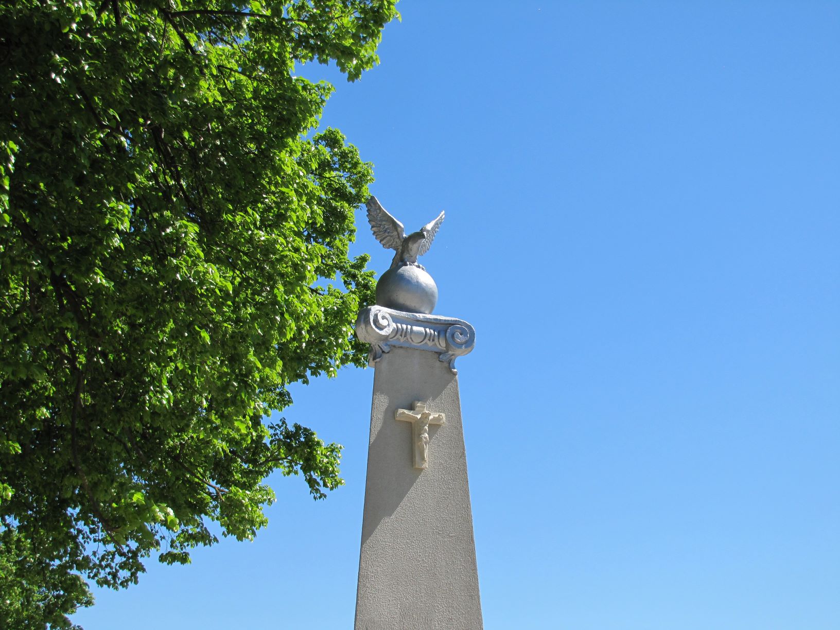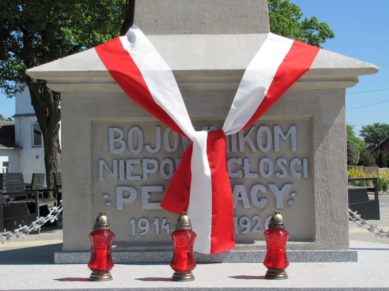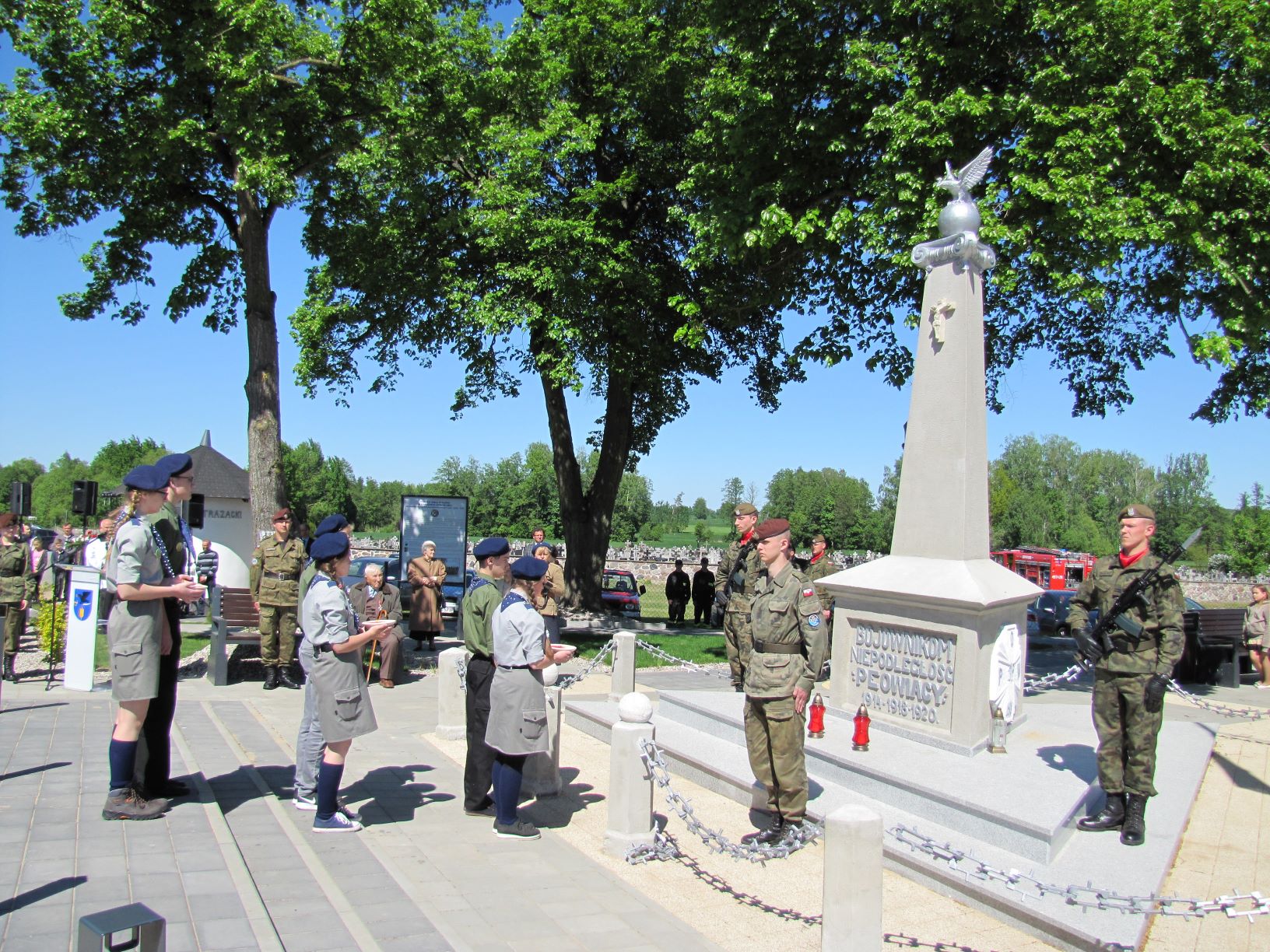 Pomnik ku czci bojowników o niepodległość, poległych w latach 1914-1920, zwany pomnikiem Orła Białego, został wzniesiony w 1936 r. Inicjatorem budowy byli trzej weterani: Bolesław Sztyler, zastępca komendanta POW w Wysokiem Mazowieckiem, Stanisław Mystkowski, żołnierz POW i ochotnik w wojnie polsko-bolszewickiej oraz Mieczysław Biały, również peowiak, podczas wojny polsko-bolszewickiej żołnierz 33. Pułku Piechoty. Uroczystość odsłonięcia i poświęcenia pomnika miała miejsce 30 sierpnia 1936 r. Uczestniczył w niej starosta wysokomazowiecki dr Józef Świątkiewicz, a oprawę religijną zapewnił ksiądz proboszcz Konstanty Ostrowski. Pomnikowi nadano prostą lecz wyrazistą formę. Na szerokim cokole o trójkątnym obrysie, poprzedzonym dwoma schodkami, wniesiono wysoki obelisk zwieńczony kulą i postacią orła wzbijającego się do lotu. Na froncie cokołu widnieje napis: BOJOWNIKOM / NIEPODLEGŁOŚCI / PEOWIACY / 1914 – 1918 - 1920 W 1939 r. pomnik w Dąbrówce Kościelnej został opisany w następujący sposób: Pomnik POW – słup cementowy, trójkątny, z kulą i orłem na wierzchu, od frontu; z boku jest mały krzyżyk, u dołu są napisy i odznaki strzeleckie… . Czasy drugiej wojny światowej i PRL-u monument przetrwał w dobrym stanie. Nie był co prawda otoczony urzędową opieką, ale też nie uległ zniszczeniu. Do 2017 r. trwał nieco zapomniany, w pogarszającym się stanie wywołanym upływającym czasem. W latach 2017-2018 pomnik oraz teren skweru na którym się znajduje został odnowiony i urządzony staraniem władz gminy. Ponownego uroczystego odsłonięcia dokonano 6 maja 2018 r. przy udziale mieszkańców wsi, oddziałów reaktywowanej POW i zaproszonych gości.