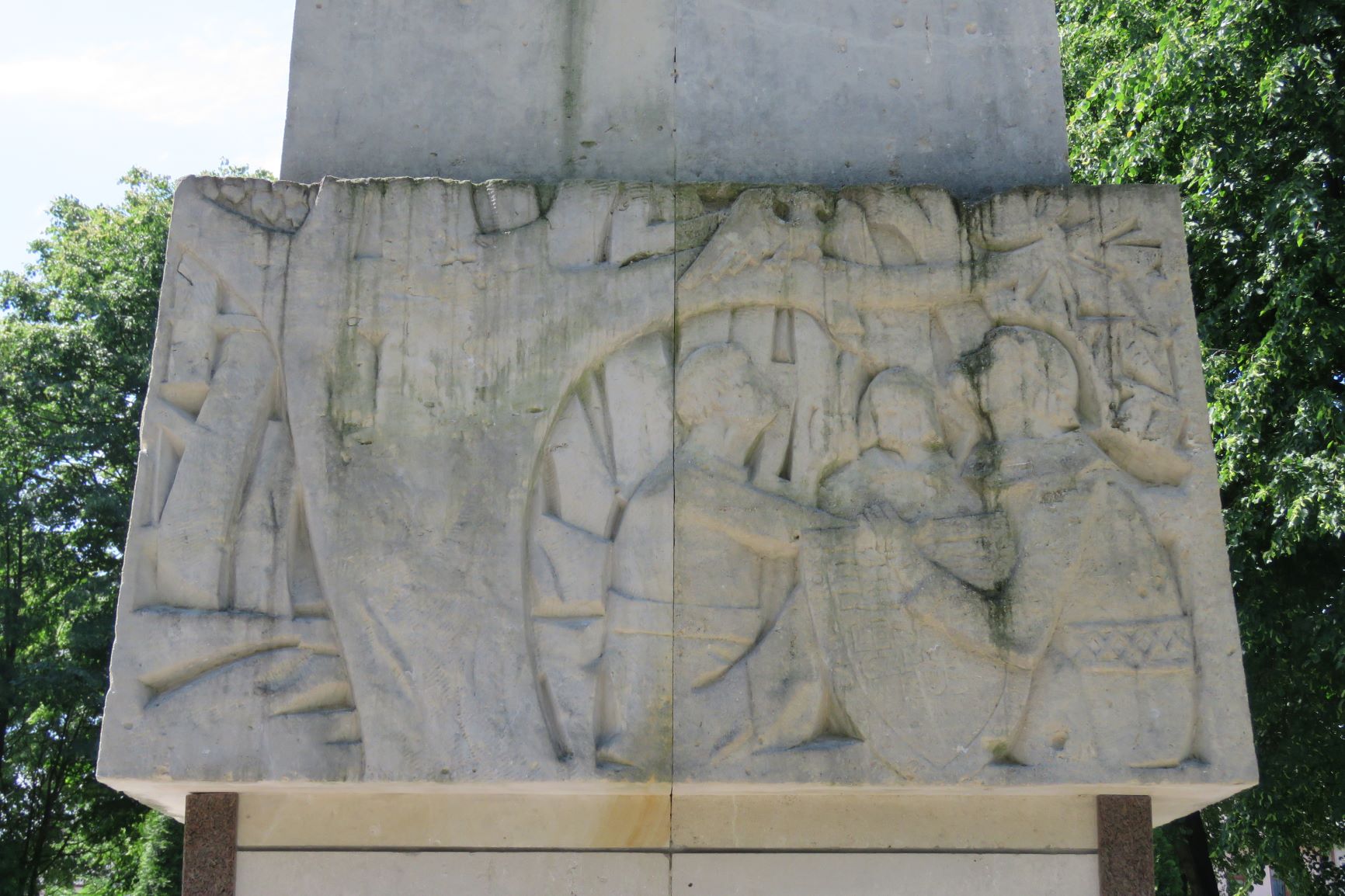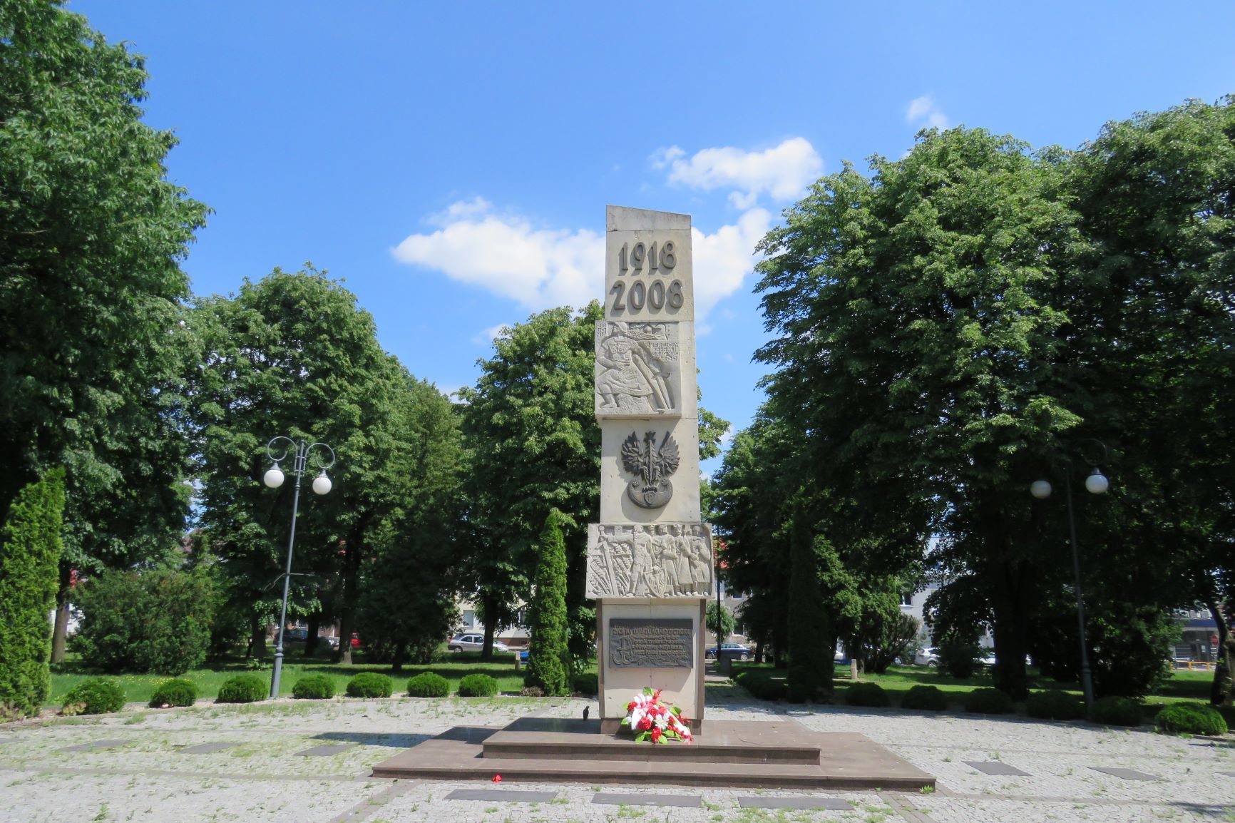Pomnik stanął na Placu Wolności 22 lipca 1965 r. jako upamiętnienie walczących o utrwalenie władzy ludowej. Wykonano go z piaskowca pińczowskiego w stylistyce czasów, w których powstał. Na płycinach przedstawiono postaci rycerzy i żołnierzy polskich z różnych okresów historycznych oraz przedstawicieli różnych grup społecznych. Jest też nawiązanie do postaci Jana z Kolna. Jedna z tablic zawiera inskrypcję o treści: 966-1966 1945 / WY / ZWO / LENIE / KOL / NA / GRUNWALD 1410 / BERLIN 1945 / LENINO 1943 / MONTE CAS / SINO 1943 / NARWIK 1940 / WESTERPLATTE / 1939 Kolejna inskrypcja, obecnie przykryta zasłonięta, brzmiała: Bohaterom walk o utrwalenie władzy ludowej w XX lecie PRL”. W 2008 r., w dziewięćdziesiątą rocznicę odzyskania niepodległości, sejm RP ogłosił Rok Niepodległości. Władze Kolna przystąpiły wówczas do zmiany symbolicznego przekazu pomnika. Umieszczono na nim nowe elementy upamiętniające odzyskanie niepodległości: daty 1918 i 2008, orła Legionów oraz medalion z popiersiem Józefa Piłsudskiego. Dodano także tablicę pamiątkową o treści: WSZYSTKIM KTÓRZY ZŁOŻYLI SWOJE / ŻYCIE NA OŁTARZU WOLNEJ OJCZYZNY Pomnik zrekonstruowano / w 90 rocznicę odzyskania / przez Polskę niepodległości / KOLNO / 11 listopada 2008. Źródło: Małgorzata Karczewska, Maciej Karczewski, Miejsca pamięci czynu niepodległościowego na północno-wschodnim Mazowszu, Białystok 2019, tam wcześniejsza literatura. Fot. © Małgorzata Karczewska