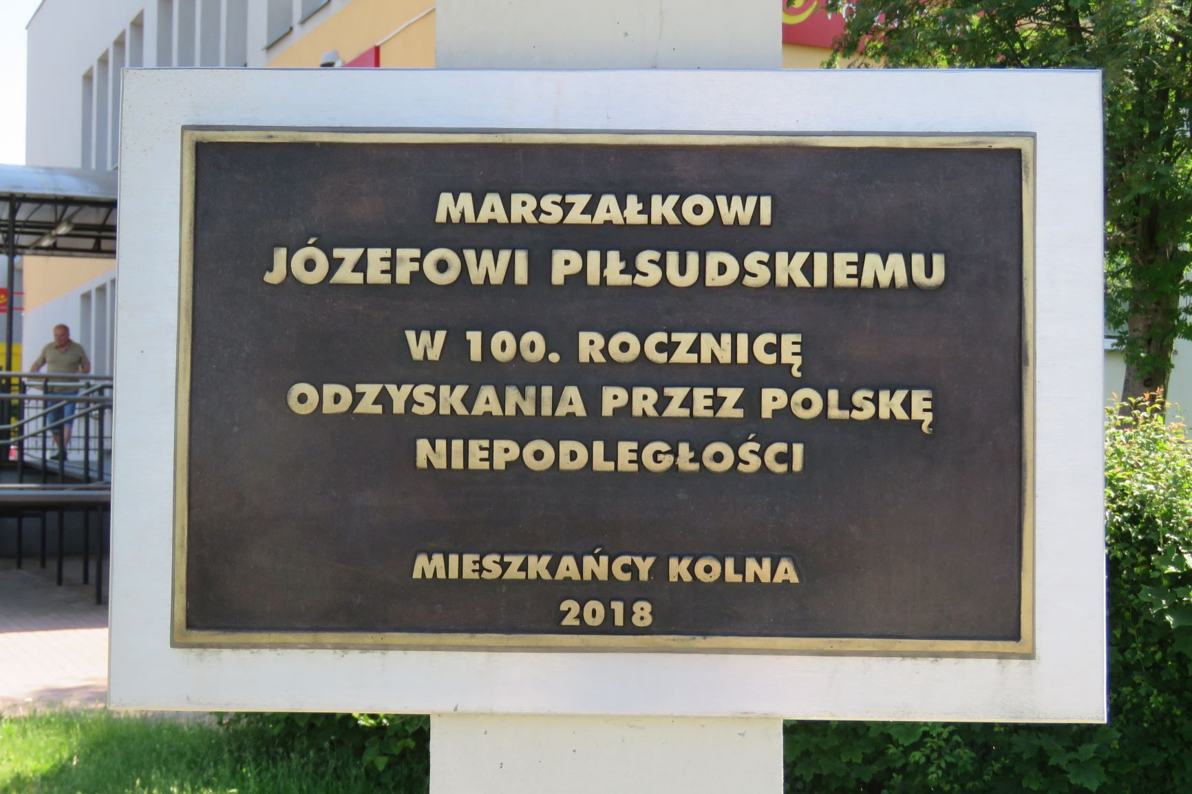 Nieopodal „Dębu Wolności”, przy skrzyżowaniu ulic Wojska Polskiego i M. Konopnickiej wzniesiono pomnik ku czci Józefa Piłsudskiego. Odsłonięto go 11 listopada 2018 r., podczas uroczystości związanych z setną rocznicą odzyskania niepodległości. Elementy pomnika są darem nieżyjącego już Stanisława Malinowskiego, byłego dyrektora jednej z kolneńskich szkół. Pomnik ma formę nieobrobionego głazu wspartego na dwóch betonowych filarach. Zwieńczony jest orłem zrywającym się do lotu. Na froncie pomnika umieszczono płaskorzeźbę popiersia Józefa Piłsudskiego oraz inskrypcja: Józef Piłsudski / 1867 – 1935 Poniżej, na jednym z filarów znajduje się tablica pamiątkowa o treści: MARSZAŁKOWI JÓZEFOWI PIŁSUDSKIEMU / W 100. ROCZNICĘ / ODZYSKANIA PRZEZ POLSKĘ / NIEPODLEGŁOŚCI / MIESZKAŃCY KOLNA / 2018. Źródło: Małgorzata Karczewska, Maciej Karczewski, Miejsca pamięci czynu niepodległościowego na północno-wschodnim Mazowszu, Białystok 2019, tam wcześniejsza literatura. Fot. © Małgorzata Karczewska