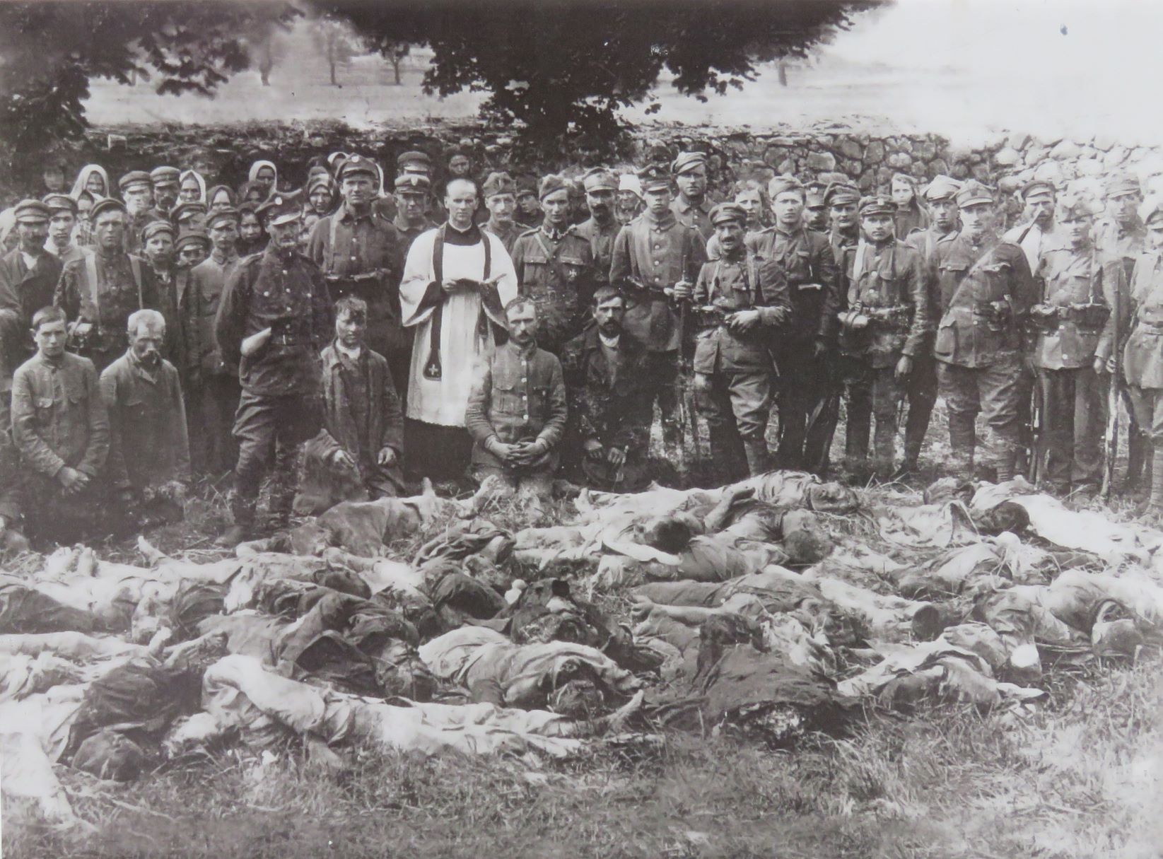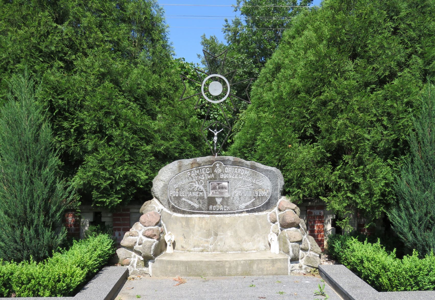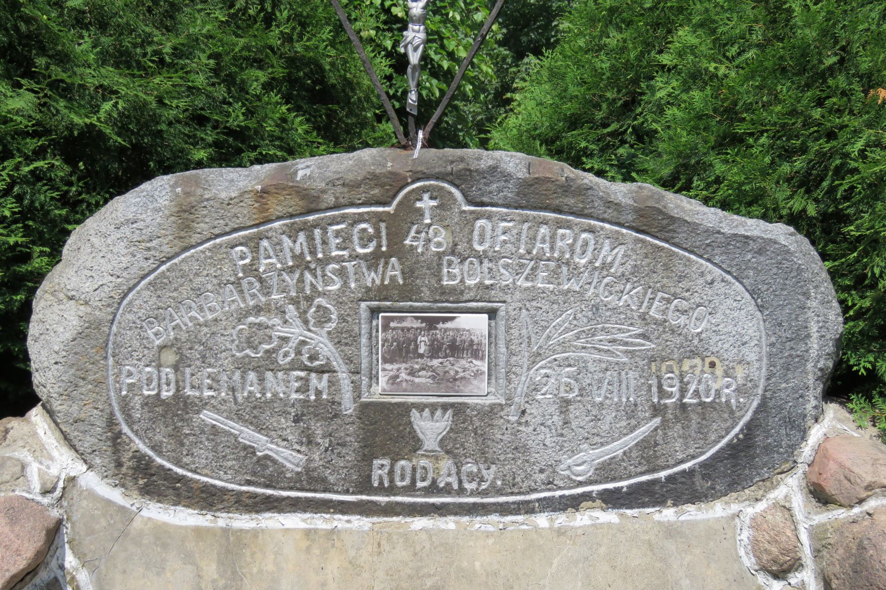 W północno-zachodniej części starego cmentarza parafialnego, w zbiorowej mogile pochowano 43 żołnierzy polskich poległych pod Lemanem 25 sierpnia 1920 r. Ich ciała, zebrane z pola bitwy, zostały przewiezione do oddalonego o ponad 20 km Kolna. Dwóch żołnierzy pochodzenia żydowskiego pochowano na tutejszym kirkucie. W centralnej części mogiły wystawiony został nagrobek z pamiątkową inskrypcją. Podstawa nagrobka jest wymurowana z kamieni polnych, na niej umieszczono horyzontalnie głaz zwieńczony kutym, żelaznym krzyżem. Na froncie głazu znajduje się inskrypcja w otoczeniu motywów gałęzi dębowych i palmowych, kielicha, szabli i karabinu: PAMIĘCI 43 OFIAROM / BARBARZYŃSTWA BOLSZEWICKIEGO / POD LEMANEM 25.VIII.1920 R. / RODACY Pod inskrypcją umieszczono fotografię przedstawiającą ciała żołnierzy przed pogrzebem na cmentarzu w Kolnie. Porównując stylistykę nagrobka oraz podstawy krzyża przydrożnego przy obecnej ul. Wojska Polskiego, przy którym posadzona o 1919 r. „Dęby Wolności” trudno nie zauważyć podobieństw. Można zatem przyjąć, że nagrobek wykonany został na wzór starszego obiektu związanego z upamiętnianiem odzyskania niepodległości. W okresie PRL-u nagrobek był wielokrotnie niszczony. Napis pokryty został warstwą tynku. Dopiero w 1993 r. mogiła została ponownie urządzona na podstawie projektu Tadeusza Butlera, z zachowaniem oryginalnych elementów wystroju. W wykazie strat Wojska Polskiego w latach 1918-1920 pod datą 25 sierpnia 1920 r. wymieniono nazwiska czternastu żołnierzy poległych pod Lemanem oraz szesnastu, dla których jako miejsce śmierci podano Kolno. Prawdopodobnie wszyscy oni zostali pochowani w tej samej mogile. Żołnierze wymienieni w wykazie strat Wojska Polskiego w latach 1918-1920, dla których jako miejsce śmierci podano Leman: Marian Barański, strzelec Kowieńskiego Pułku Strzelców, poległ 25 VIII 1920 r. Józef Bogdanowicz, strzelec Kowieńskiego Pułku Strzelców, poległ 25 VIII 1920 r. Wiktor Borowski, plutonowy Kowieńskiego Pułku Strzelców, poległ 25 VIII 1920 r. Leon Dawidowicz, sierżant Kowieńskiego Pułku Strzelców, poległ 25 VIII 1920 r. Paweł Golder, strzelec Kowieńskiego Pułku Strzelców, poległ 25 VIII 1920 r. Andrzej Kozuro, strzelec Kowieńskiego Pułku Strzelców, poległ 25 VIII 1920 r. Franciszek Kudzin, strzelec Kowieńskiego Pułku Strzelców, poległ 25 VIII 1920 r. Jan Podkoński, strzelec Kowieńskiego Pułku Strzelców, poległ 25 VIII 1920 r. Jan Pomaski, plutonowy Kowieńskiego Pułku Strzelców, poległ 25 VIII 1920 r. Jan Romancewicz, starszy strzelec Kowieńskiego Pułku Strzelców, poległ 25 VIII 1920 r. Mieczysław Rymkiewicz, strzelec Kowieńskiego Pułku Strzelców, poległ 25 VIII 1920 r. Stanisław Słomczyński, strzelec Kowieńskiego Pułku Strzelców, poległ 25 VIII 1920 r. Antoni Tymiński, strzelec Kowieńskiego Pułku Strzelców, poległ 25 VIII 1920 r. Edwin Zontak, strzelec Kowieńskiego Pułku Strzelców, poległ 25 VIII 1920 r. Żołnierze wymienieni w wykazie strat Wojska Polskiego w latach 1918-1920, dla których jako miejsce śmierci podano Kolno: Franciszek Bindas, szeregowy 59 Pułku Piechoty, poległ 25 VIII 1920 r. Brunon Bogdański, szeregowy 59 Pułku Piechoty, poległ 25 VIII 1920 r. Jan Borowski, strzelec Kowieńskiego Pułku Strzelców, poległ 25 VIII 1920 r. Jan Kasprowiak, strzelec 2. Pułku Strzelców Wielkopolskich, poległ 24 IV 1919 r. Leon Kaszyński, szeregowy 60. Pułku Piechoty, poległ 26 VIII 1920 r. Aleksander Mickiewicz, starszy strzelec Kowieńskiego Pułku Strzelców, poległ 25 VIII 1920 r. Walenty Narewski, strzelec 1. Pułku Strzelców Granicznych, poległ 3 VIII 1920 r. [brak imienia] Piaskowski, szeregowy 2. Pułku Strzelców Wielkopolskich, poległ 7 II 1919 r. Józef Polowczyk, szeregowy 60. Pułku Piechoty, poległ 20 VIII 1920 r. Klemens Rybiński, podporucznik Kowieńskiego Pułku Strzelców, zmarł (utonął) 24 VIII 1920 r. Piotr Skaziński, starszy szeregowy 59. Pułku Piechoty, poległ 25 VIII 1920 r. Antoni Smolibowski, szeregowy 2. Pułku Strzelców Wielkopolskich, zmarł (utonął) 20 VI 1919 r. Władysław Stachura, szeregowy 59. Pułku Piechoty, poległ 25 VIII 1920 r. Jan Stasiak, strzelec 1. Pułku Strzelców Granicznych, zm. […] 2 VIII 1920 r. Stanisław Sumbor, strzelec Kowieńskiego Pułku Strzelców, poległ 25 VIII 1920 r. Aleksander Śpiewakowski, starszy strzelec Kowieńskiego Pułku Strzelców, poległ 25 VIII 1920 r. Źródło: Małgorzata Karczewska, Maciej Karczewski, Miejsca pamięci czynu niepodległościowego na północno-wschodnim Mazowszu, Białystok 2019, tam wcześniejsza literatura. Fot. © Małgorzata Karczewska