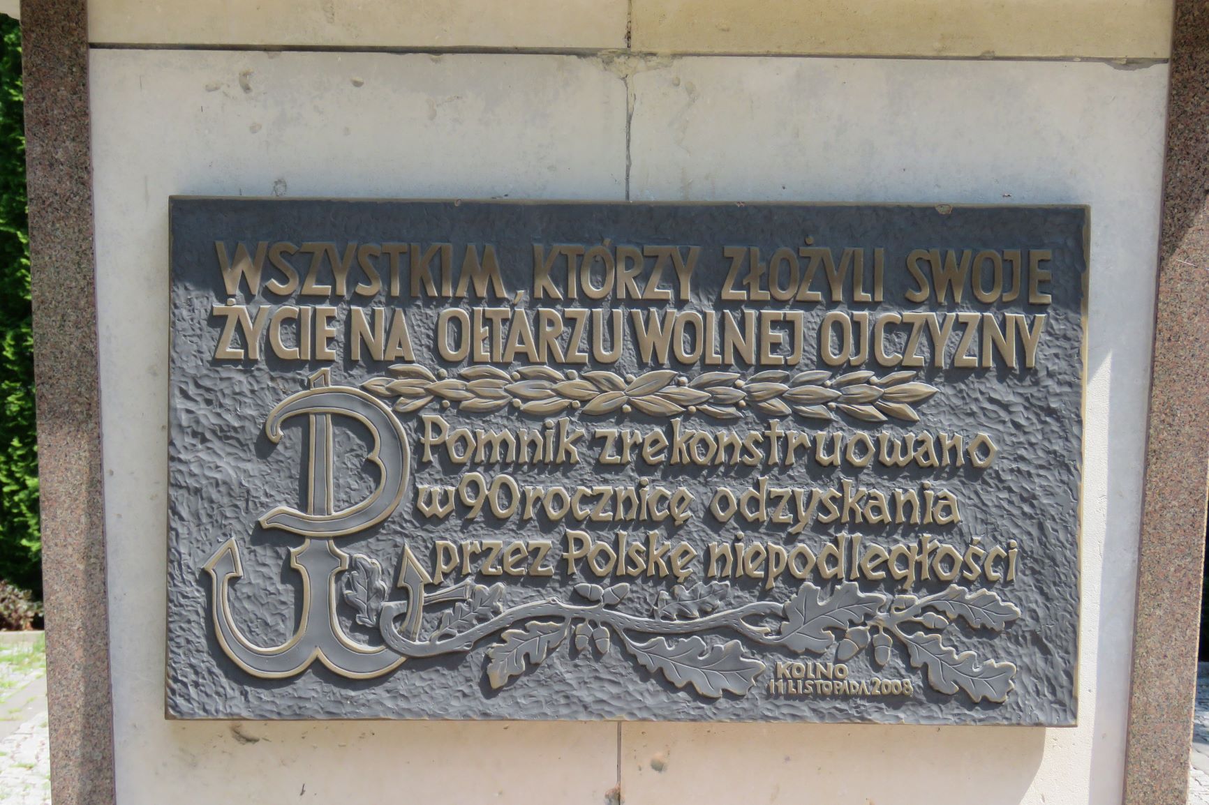 W Kolnie, główne uroczystości poświęcone odzyskaniu niepodległości odbyły się 3 maja 1919 roku. Miała wówczas miejsce wielka manifestacja mieszkańców miasta z udziałem przedstawicieli Komisariatu Rządu Powiatowego, przedstawicieli ugrupowań politycznych powiatu i straży ogniowej. Przybyli także żołnierze 33. Pułku Piechoty z Łomży. Pochód przeszedł ulicami miasta niosąc ocalałe sztandary. Do marszu przygrywała orkiestra strażacka. Pochód doszedł do ówczesnej miejskiej rogatki przy ul. Czerwińskiej, ob. ul. Wojska Polskiego. Przy stojącym tam żeliwnym krzyżu osadzonym w kamiennej podstawie, po obu jego stronach posadzono dwa dęby nazwane „dębami wolności” . Przy jedynym zachowanym dębie, tradycyjnie mają miejsce miejskie obchody świąt państwowych związanych z odzyskaniem przez Polskę niepodległości oraz innymi świętami podtrzymującymi pamięć o zrywach narodowo-wyzwoleńczych. Źródło: Małgorzata Karczewska, Maciej Karczewski, Miejsca pamięci czynu niepodległościowego na północno-wschodnim Mazowszu, Białystok 2019, tam wcześniejsza literatura. Fot. © Małgorzata Karczewska