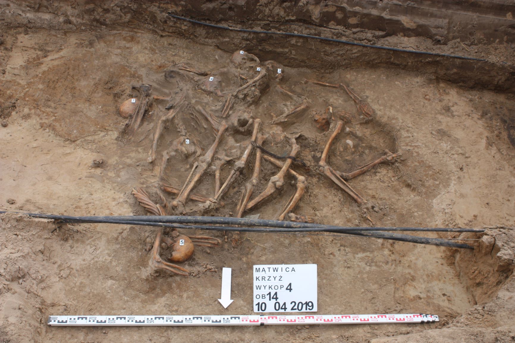 W 2018 r. na północno-zachodnim skraju Mątwicy natrafiono na nowożytny cmentarz. Do odkrycia doszło podczas przebudowy drogi wojewódzkiej nr 645, tak więc jedynym rozwiązaniem była ekshumacja szczątków. Cmentarz założony został w pewnym oddaleniu od zabudowy wsi. Jego lokalizację wyznaczał krzyż ufundowany w 1899 r., jednak tradycja grzebania w tym miejscu zmarłych była zapewne znacznie starsza. Wśród mieszkańców Mątwicy przechowywana była pamięć o żołnierzach pochowanych przy krzyżu, jednak istniało przekonanie, że byli to polegli podczas II wojny światowej i ich szczątki zostały ekshumowane w latach 70. XX w. W wyniku dwóch sezonów badań wykopaliskowych, prowadzonych w 2018 i 2019 r., odnaleziono i ekshumowano: szczątki osób cywilnych, zapewne pochowanych w XVIII i XIX w. na pozakościelnym cmentarzu wiejskim, tzw. mogiłkach, 40 żołnierzy armii rosyjskiej z czasów I wojny światowej, sześciu żołnierzy polskich poległych podczas wojny polsko-bolszewickiej i prawdopodobnie przemieszane szczątki kolejnych trzech poległych podczas tej wojny, a także szczątki poekshumacyjne 35 żołnierzy polskich z września 1939 r. Tym samym, potwierdzone zostały wspomnienia mieszkańców na temat ekshumacji żołnierzy pochowanych przy krzyżu, jednak jedynie w odniesieniu do poległych we wrześniu 1939 r. Żołnierze polegli podczas wojny polsko-bolszewickiej służyli prawdopodobnie w 205. Pułku Piechoty oraz 108. Pułku Ułanów. Jednostki te walczyły w okolicach Nowogrodu i Mątwicy w dniach 1-2 sierpnia 1920 r. Zdaniem badaczy, na związek z tymi jednostkami wskazują wzory guzików mundurowych oraz biżuterii patriotycznej odnalezionej przy szczątkach . Powtórny pochówek żołnierzy polskich poległych w 1920 r. miał miejsce 14 sierpnia 2019 r. na cmentarzu katedralnym w Łomży. Źródło: Małgorzata Karczewska, Maciej Karczewski, Miejsca pamięci czynu niepodległościowego na północno-wschodnim Mazowszu, Białystok 2019, tam wcześniejsza literatura. Fot. © Małgorzata Karczewska i Michał Grabowski, firma Zabytki. Badania. Projekty. Realizacje
