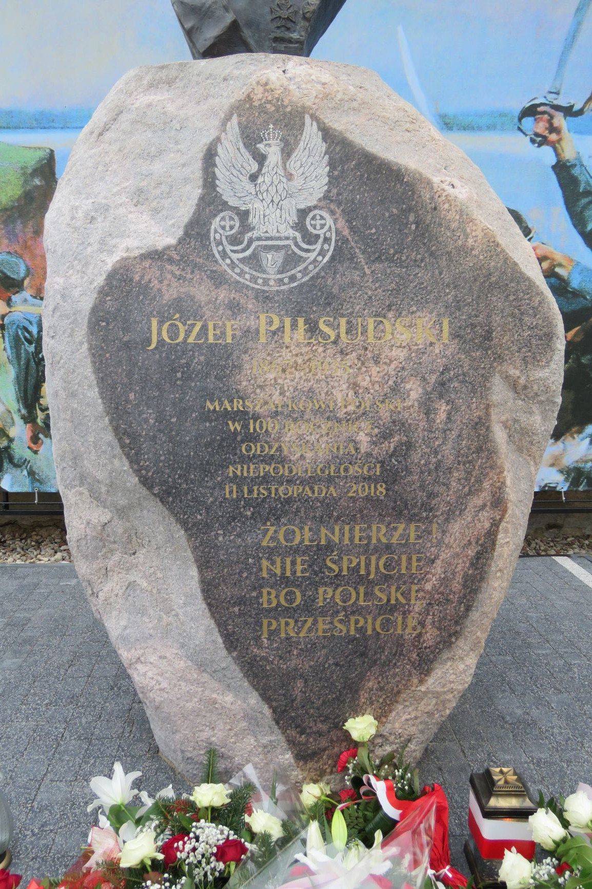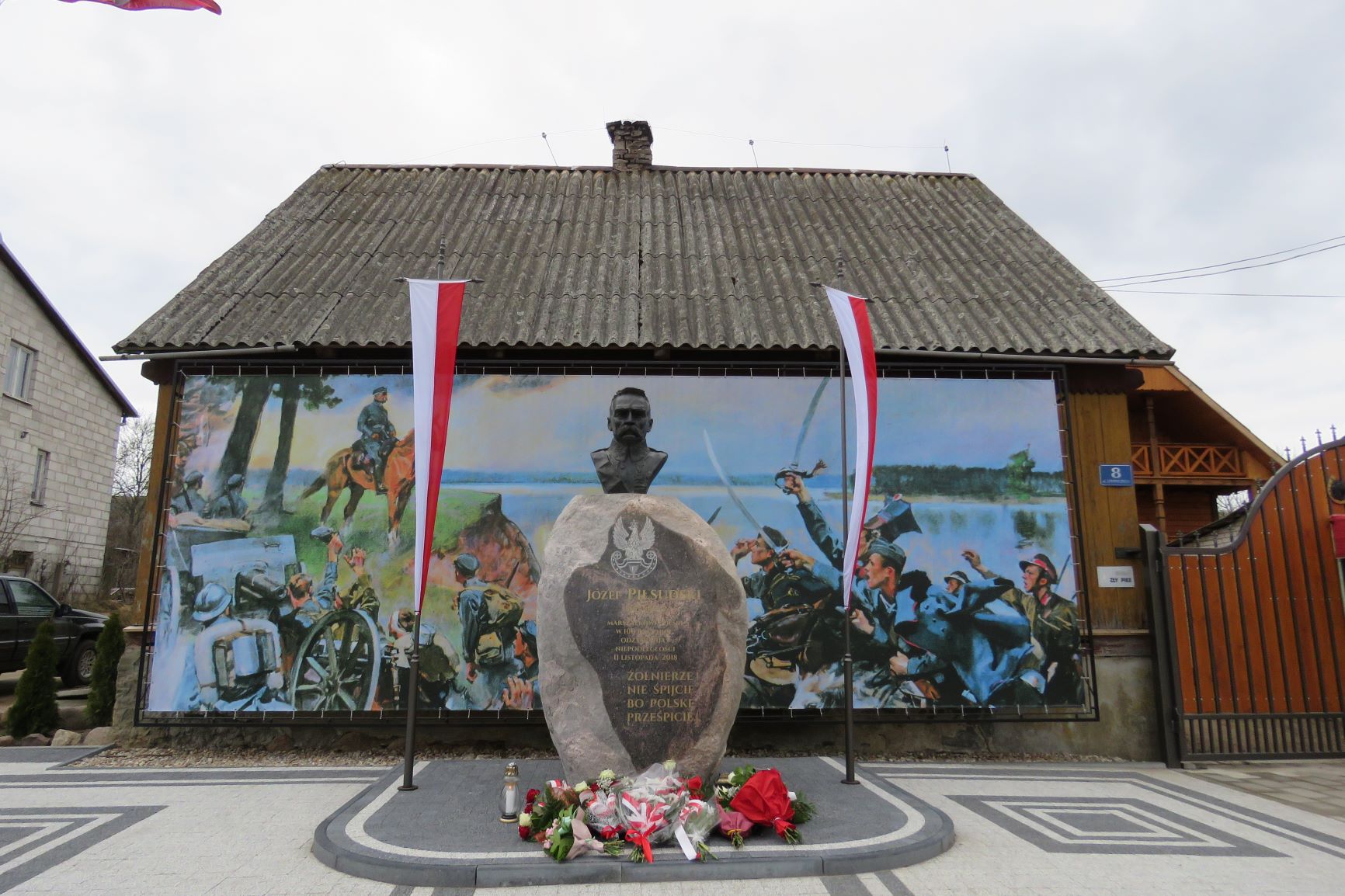 Pomnik Józefa Piłsudskiego w Małym Płocku należy do wyjątkowych upamiętnień. Pomysłodawcą, głównym wykonawcą i fundatorem monumentu jest Jan Zieliński, przedsiębiorca z Małego Płocka, który zaprojektował miejsce pamięci i wzniósł je na należącej do niego prywatnej posesji. W pracach budowlanych wspomogli go synowie i mieszkańcy miejscowości. W przyszłości, w budynku obok pomnika powstanie prywatne muzeum Józefa Piłsudskiego. Uroczyste odsłonięcie pomnika odbyło się 11 listopada 2018 r. podczas gminnych uroczystości obchodów stulecia odzyskania niepodległości. Mimo, iż monument jest prywatną fundacją, stanowi scenografię oficjalnych uroczystości gromadzących władze gminne, powiatowe i wojewódzkie oraz duchowieństwo i parlamentarzystów. W doniesieniach medialnych nie znajdziemy jednak informacji o pomysłodawcy i fundatorze pomnika. Na wysokim, granitowym cokole wykonanym z głazu narzutowego znajduje się odlane z brązu popiersie marszałka Józefa Piłsudskiego, poniżej, na froncie cokołu: orzełek legionów z dodaną zamkniętą koroną z krzyżem i inskrypcja: JÓZEF PIŁSUDSKI / 1867 – 1935 / MARSZAŁKOWI POLSKI / W 100 ROCZNICĘ / ODZYSKANIA / NIEPODLEGŁOŚCI / 11 LISTOPADA 2018. ŻOŁNIERZE! / NIE ŚPIJCIE / BO POLSKĘ / PRZEŚPICIE… Tłem pomnika jest kopia obrazu Wojciecha Kossaka pt. Apoteoza Wojska Polskiego. Źródło: Małgorzata Karczewska, Maciej Karczewski, Miejsca pamięci czynu niepodległościowego na północno-wschodnim Mazowszu, Białystok 2019. Fot. © Małgorzata Karczewska