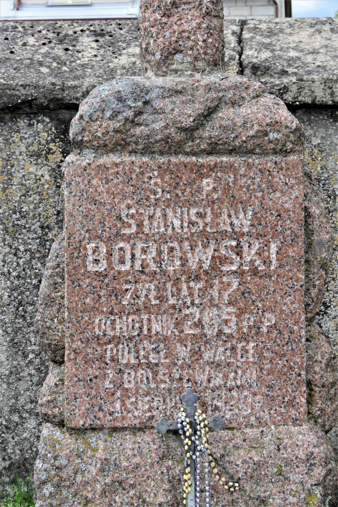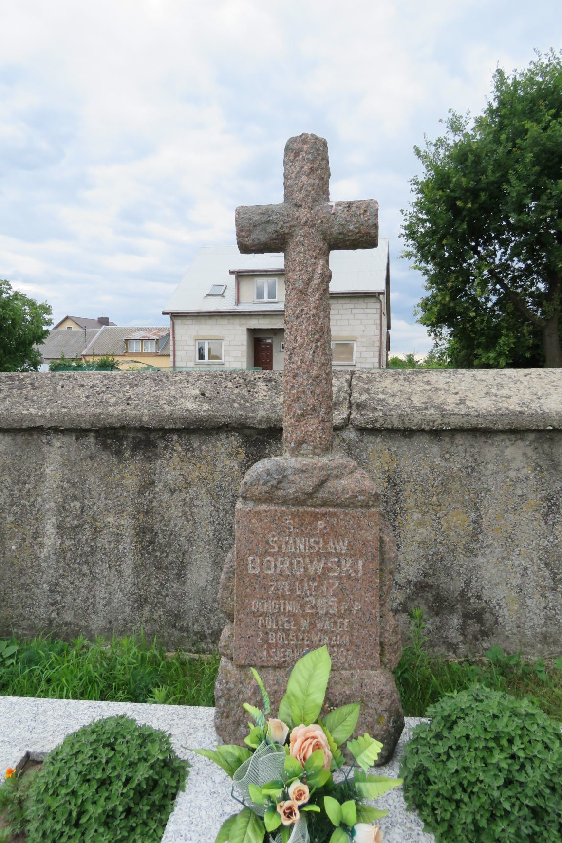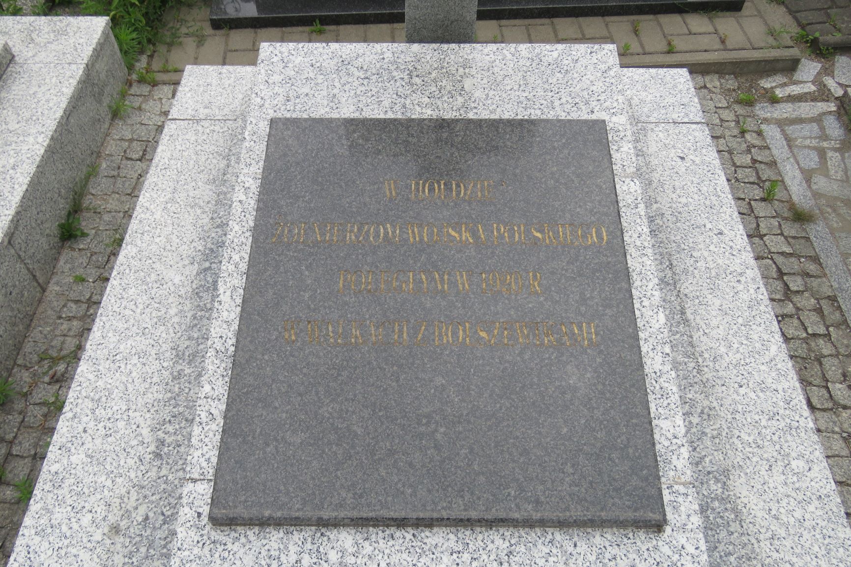 W 1920 r. w trzech grobach na cmentarzu parafialnym pochowano nieustaloną liczbę żołnierzy poległych podczas walk toczonych w okolicach miasta. Zapewne są wśród nich również polegli i zmarli w innych okolicznościach, jak wspomniany wcześniej Michał Musiała, saper, który utonął w Narwi na początku czerwca 1919 r. Znany z nazwiska jest tylko jeden żołnierz, który spoczął w osobnej mogile położonej przy północno-zachodnim murze cmentarza. Był nim Stanisław Borowski, ochotnik 205. Pułku Piechoty, poległy 1 sierpnia 1920 r. w wieku siedemnastu lat. Na mogile obramowanej współcześnie płytami granitowymi znajduje się kamienny krzyż w formie pnia dębu, wystawiony poległemu niedługo po jego śmierci. Po przeciwnej stronie alei znajduje się kwatera żołnierska w której spoczywają żołnierze z wojny 1920 r. oraz obrońcy Nowogrodu z września 1939 r. W dwóch spośród trzech mogił zbiorowych pochowano nieznaną liczbę bezimiennych poległych w wojnie polsko-bolszewickiej. Grobom nadano współczesny wystrój. Na płytach inskrypcje: W HOŁDZIE / ŻOŁNIERZOM WOJSKA POLSKIEGO / POLEGŁYM W 1920 R. / W WALKACH Z BOLSZEWIKAMI ŻOŁNIERZOM POLSKIM / POLEGŁYM W 1920 ROKU / W WALKACH Z BOLSZEWIKAMI. Źródło: Małgorzata Karczewska, Maciej Karczewski, Miejsca pamięci czynu niepodległościowego na północno-wschodnim Mazowszu, Białystok 2019. Fot. © Małgorzata Karczewska