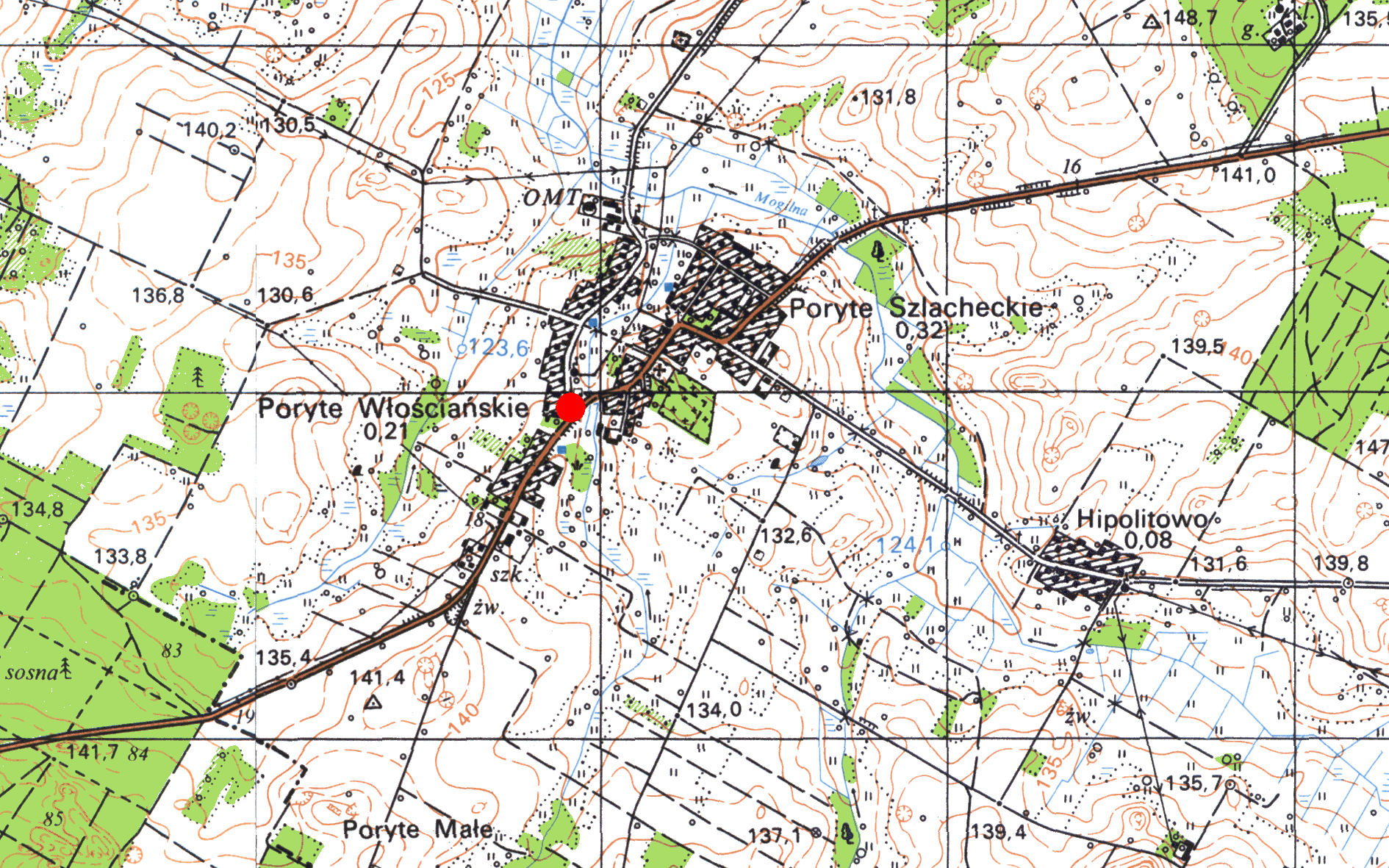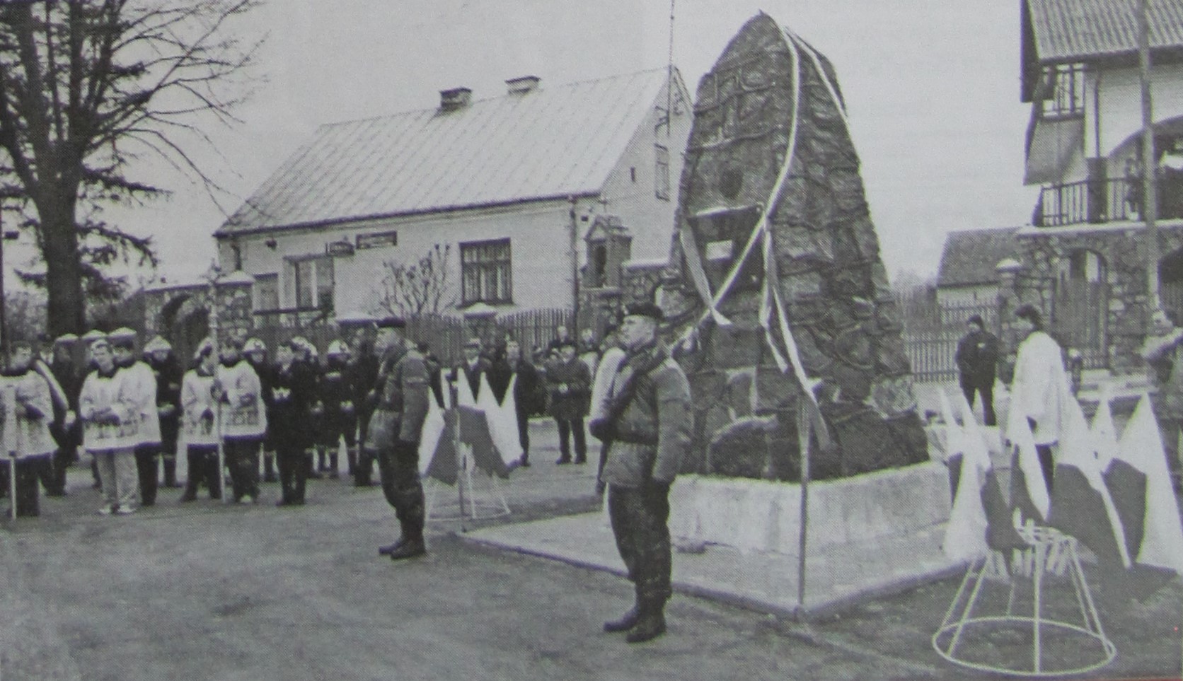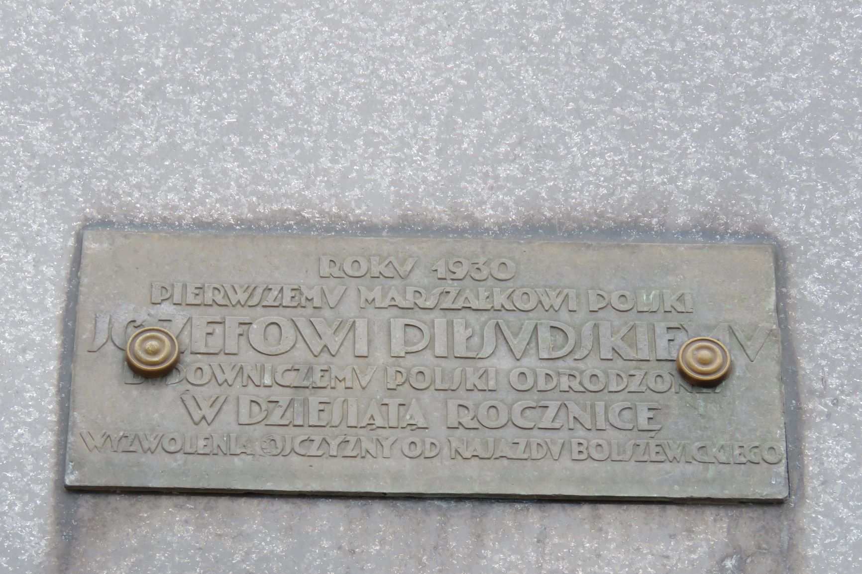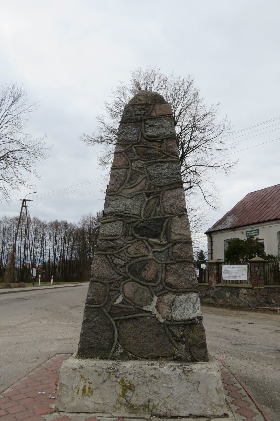 W miejscu, gdzie dawniej przebiegała granica pomiędzy wsiami Poryte Szlacheckie i Poryte Włościańskie, w 1930 r., w dziesiątą rocznicę odparcia najazdu bolszewickiego, wzniesiony został pomnik wdzięczności Józefowi Piłsudskiemu. Po II wojnie światowej pomnik pozostawał zapomniany i pozbawiony symboliki. Odnowiono go dopiero w 2001 r. z okazji obchodów 615-lecia parafii oraz 626-lecia założenia wsi. Uroczyste odsłonięcie miało miejsce podczas uroczystości związanych z rocznica odzyskania niepodległości. Pomnik murowany z kamieni polnych, w formie ściętego ostrosłupa o czworokątnej podstawie. Na froncie, w kolistej niszy znajduje się medalion z popiersiem Józefa Piłsudskiego. Poniżej, w 2001 r., na nowej, granitowej tablicy umieszczono oryginalną tabliczkę z inskrypcją: ROKU 1930 / PIERWSZEMU MARSZAŁKOWI POLSKI / JÓZEFOWI PIŁSUDSKIEMU / BUDOWNICZEMU POLSKI ODRODZONEJ / W DZIESIĄTĄ ROCZNICĘ / WYZWOLENIA OJCZYZNY OD NAJAZDU BOLSZEWICKIEGO W zwieńczeniu pomnika pierwotnie znajdował się symbol (krzyż?, orzeł?) po którym współcześnie pozostał jedynie ułamany fragment trzonu. Źródło: Małgorzata Karczewska, Maciej Karczewski, Miejsca pamięci czynu niepodległościowego na północno-wschodnim Mazowszu, Białystok 2019. Fot. © Małgorzata Karczewska