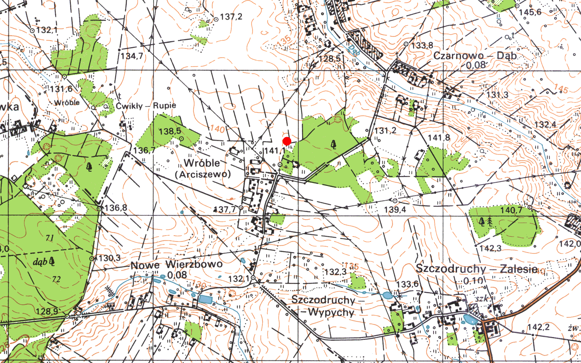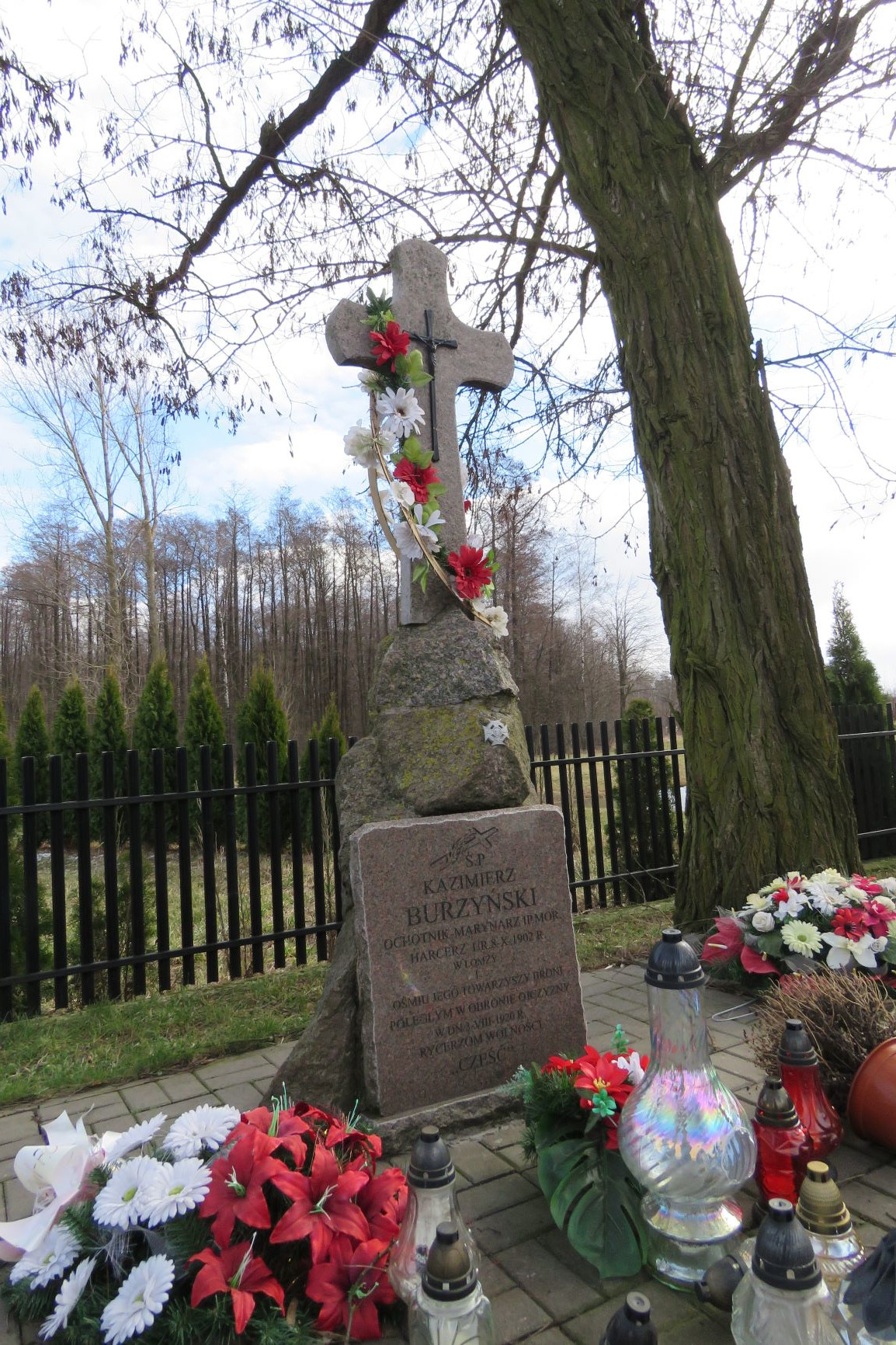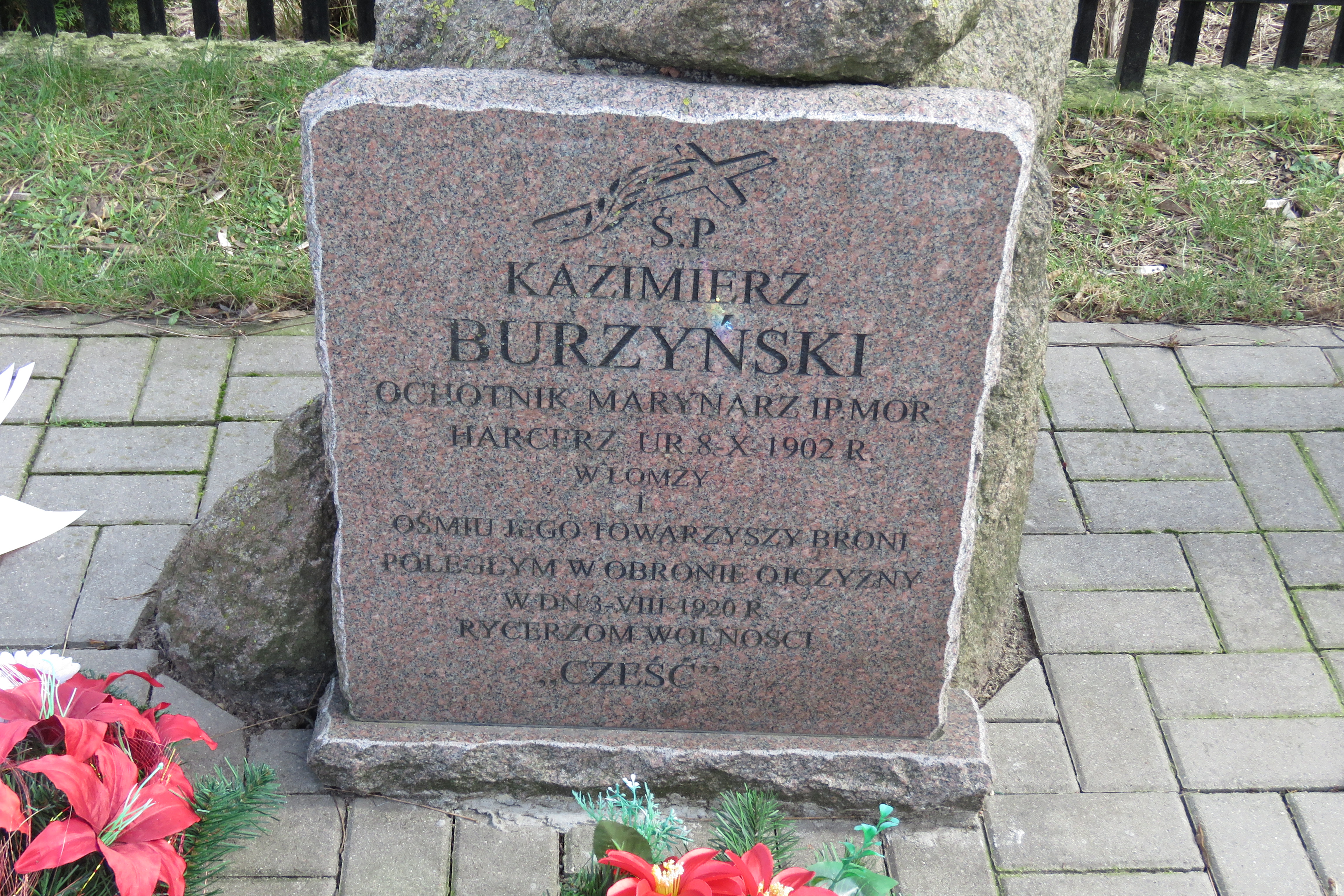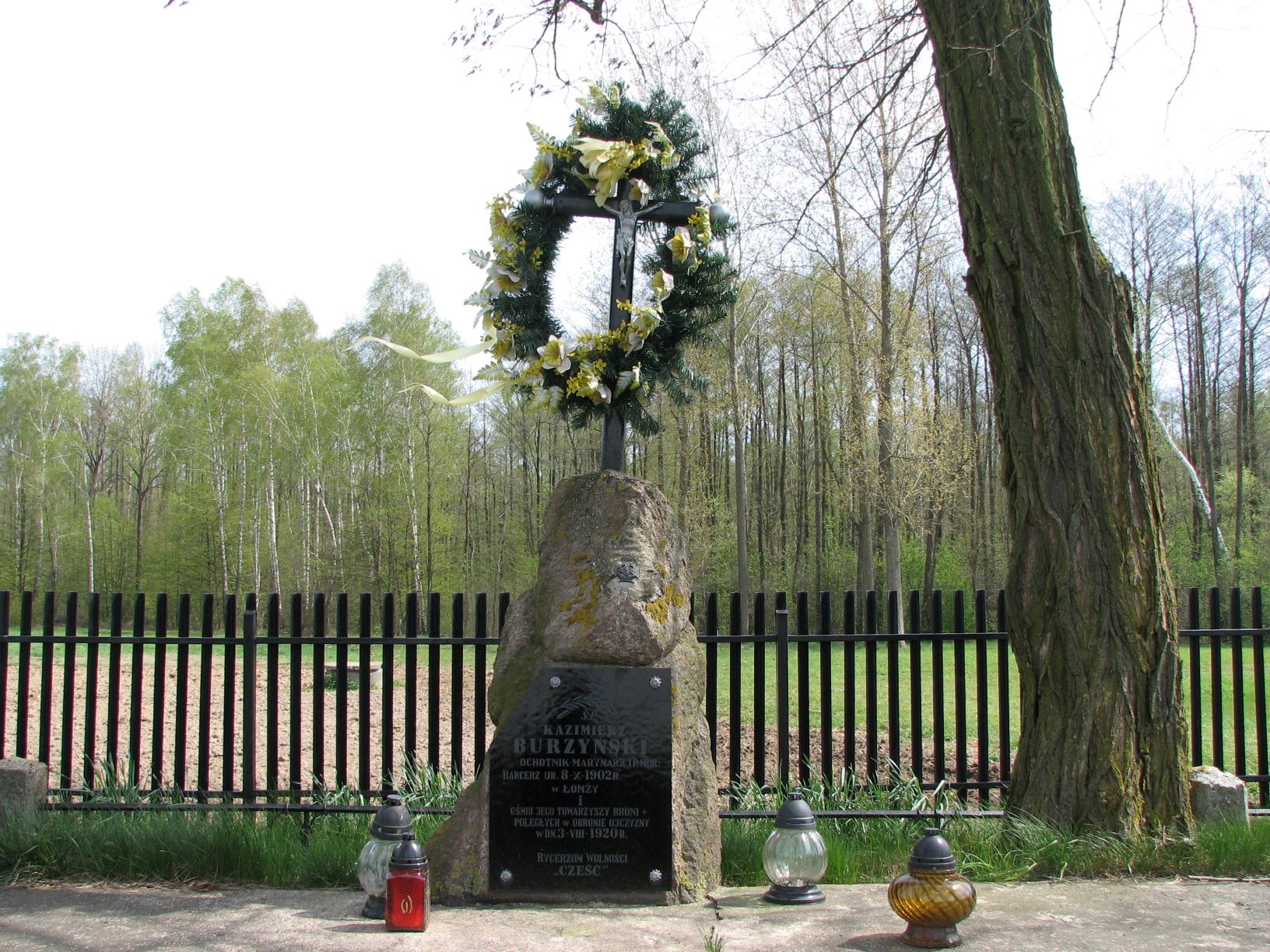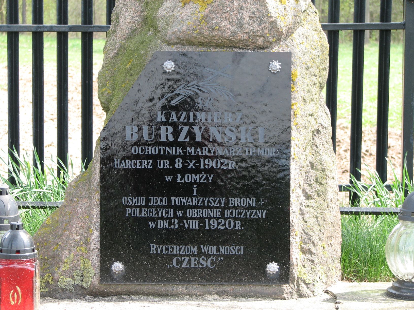 Około 300 metrów na północny wschód od wsi, bezpośrednio po walkach, we wspólnej mogile pochowanych zostało dziewięciu żołnierzy II Batalionu 1. Pułku Morskiego, poległych 3 sierpnia 1920 r. Jedynym znanym z nazwiska jest Kazimierz Burzyński, osiemnastoletni harcerz z Łomży. W rodzinnym mieście został uczczony symboliczną mogiłą na tak zwanym starym cmentarzu, przy ul. Kopernika. Pozostali polegli spoczywają jako bezimienni żołnierze. Po zakończeniu walk, w czasie urządzania miejsc pamięci wojny polsko-bolszewickiej grób pozostawiono w pierwotnej lokalizacji. W przeciągu niemal stu lat zmianie ulegał jego wystrój. Ostatni remont został w pierwszych latach XXI wieku staraniem mieszkańców wsi. Nad mogiłą wzniesiono granitowy obelisk zwieńczony krzyżem. Przed remontem był to żelazny, częściowo odlewany krzyż wykonany prawdopodobnie podczas pierwszego urządzania wystroju grobu. Obecnie jest to krzyż wykonany z granitu. Na froncie nagrobka znajduje się tablica z pamiątkową inskrypcją: KAZIMIERZ / BURZYŃSKI / OCHOTNIK – MARYNARZ IP. MOR. / HARCERZ UR. 8-X-1902 R. / W ŁOMŻY / I / OŚMIU JEGO TOWARZYSZY BRONI / POLEGŁYM W OBRONIE OJCZYZNY / W DN. 3-VIII-1920 R. / RYCERZOM WOLNOŚCI / „CZEŚĆ” Mogiła żołnierzy 1920 r. jest miejscem corocznych obchodów święta niepodległości oraz uroczystości rocznicowych „Cudu nad Wisłą” urządzanych w pierwszą niedzielę przypadającą po 15 sierpnia. Źródło: Małgorzata Karczewska, Maciej Karczewski, Miejsca pamięci czynu niepodległościowego na północno-wschodnim Mazowszu, Białystok 2019. Fot. © Małgorzata Karczewska